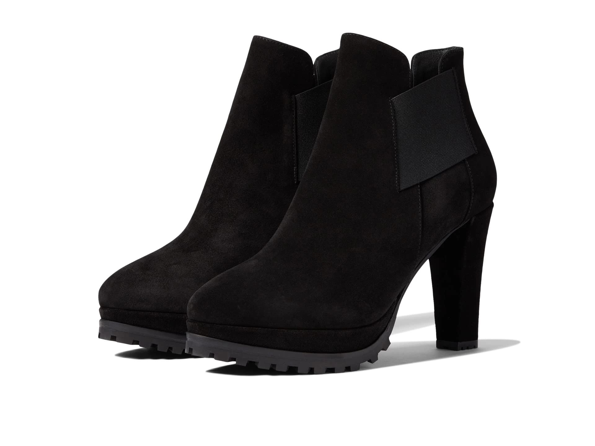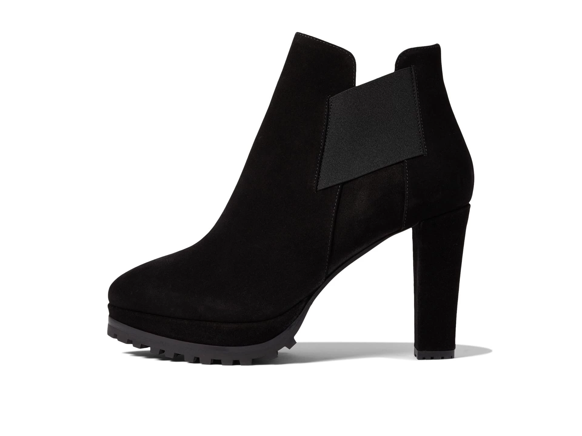- High block heel and durable rubber outsole.