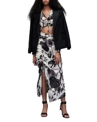 AllSaints collections of womenswear, menswear, and accessories both serves and represents a global community of customers. Founded in 1994 by husband-and-wife fashion design duo Kait Bolongaro and Stuart Trevor, the brand’s name acknowledges the All Saints Road in Notting Hill and is still headquartered in London today. At the core of the collections is the concept of reliable, go-to outfitting customers can create for themselves without lacking uniqueness—a uniform without uniformity. Sourcing raw materials and reducing water usage, memberships with Better Cotton Initiative and Responsible Wool Standard, as well as SEDEX and the British Leather Confederation, AllSaints is committed to ethical production throughout the manufacturing process. This dedication to responsibility also encompasses the company’s culture, educating on diversity and maintaining an inclusive environment.