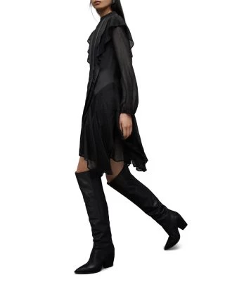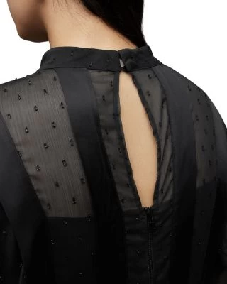 - Ruffle trims at side hem