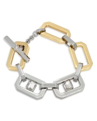 - Gold-tone and silver-tone plated brass; glass