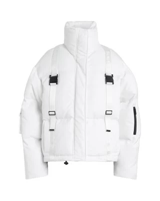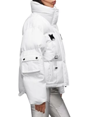 - Front zip closure, snap-closure storm placket