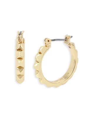 - Small-sized hoop earrings featuring three dimensional studded hardware